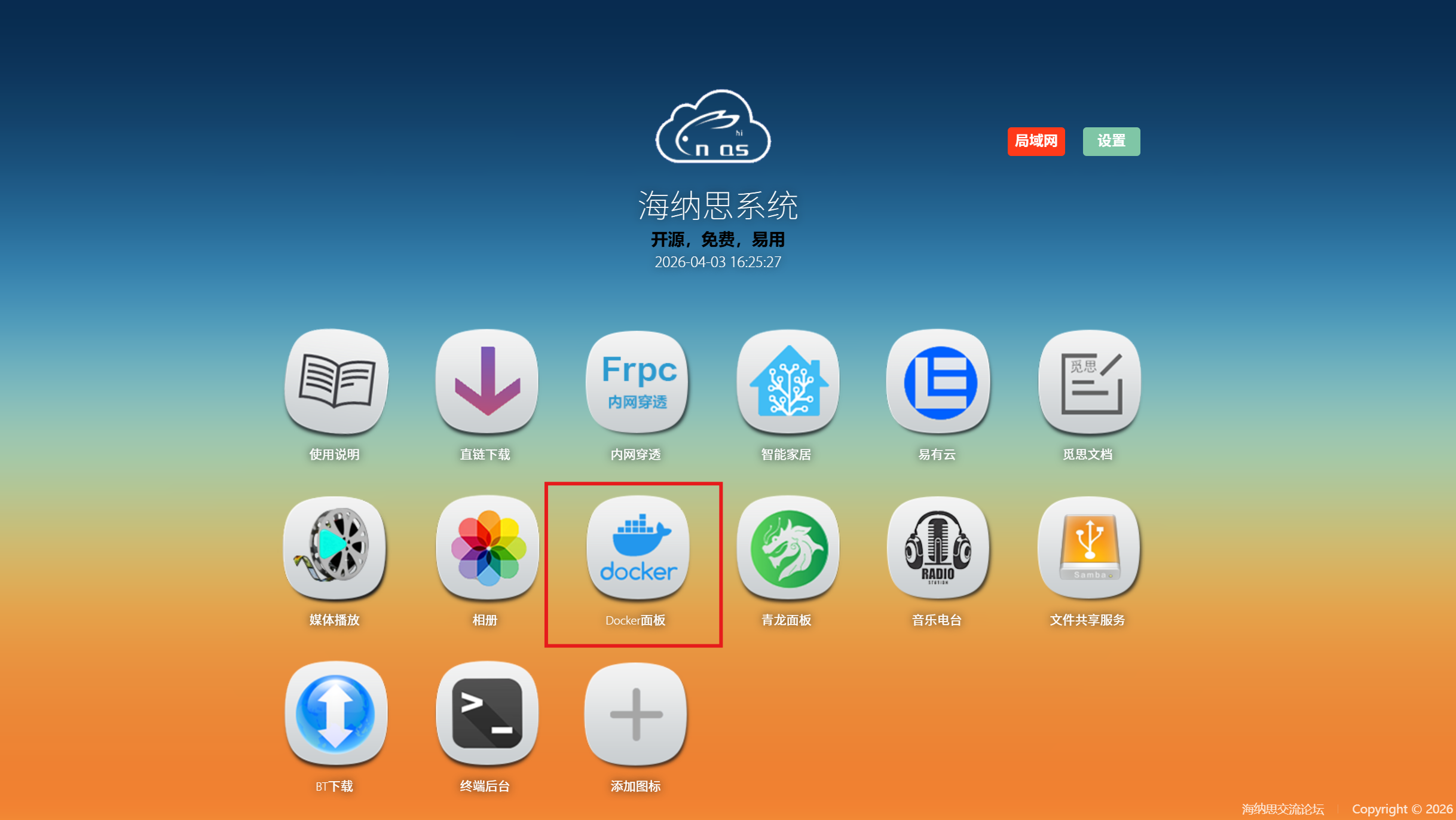 刷入完毕后,点击 外网 中的 Docker面板,按照指示完成 Docker 环境的安装