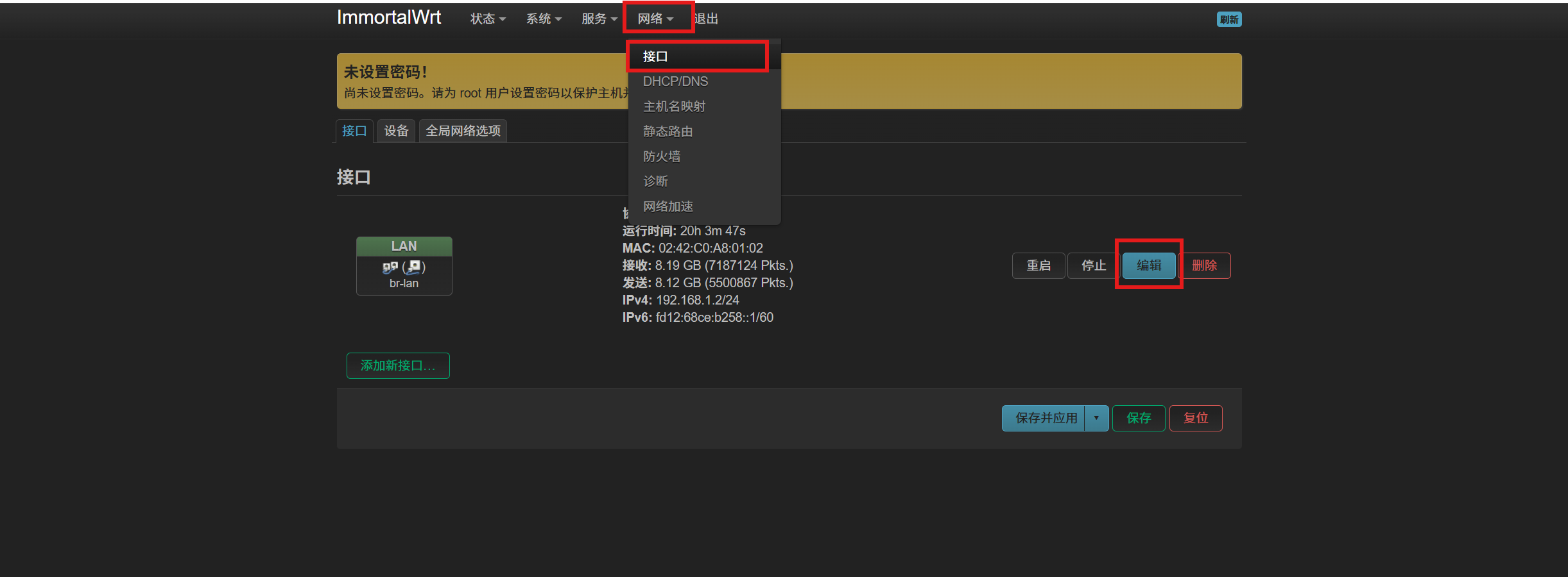 进入 网络-接口-编辑